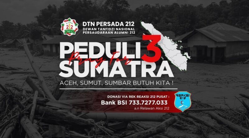 Dewan Tanfidzi Nasional Persaudaraan Alumni 212 (DTN Persada 212) kembali menggerakkan aksi kemanusiaan bertajuk “Peduli 3 Sumatra – Pray for