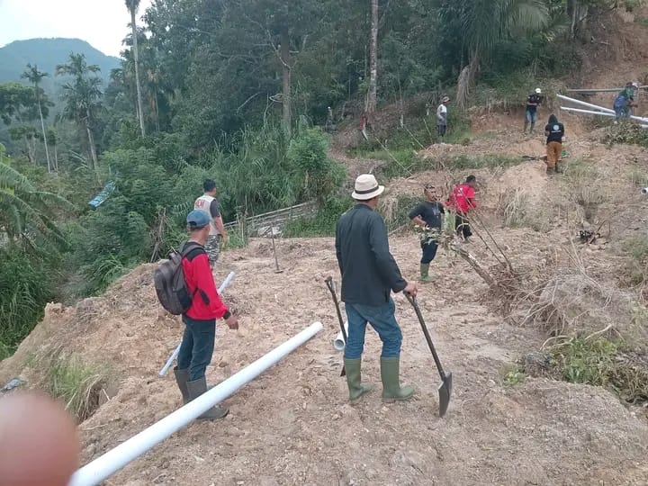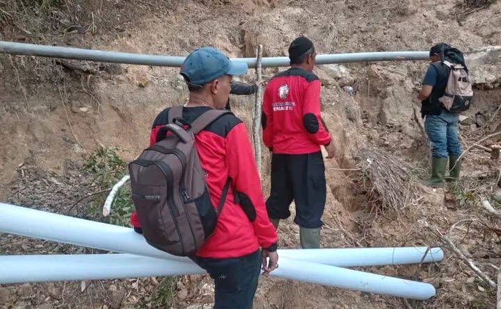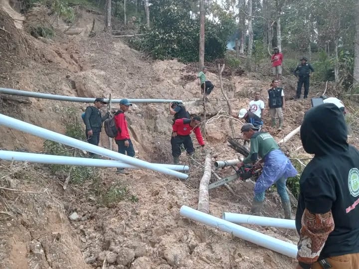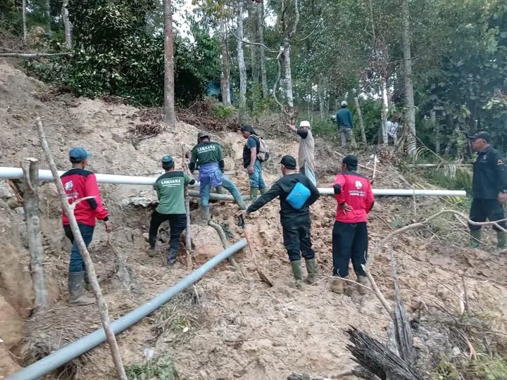 Para relawan fokus memasang kembali pipa saluran air bersih yang sebelumnya terputus akibat dampak banjir bandang dan longsor yang melanda kawasan tersebut. Upaya ini dilakukan untuk memastikan kebutuhan air bersih warga dapat kembali terpenuhi pascabencana.